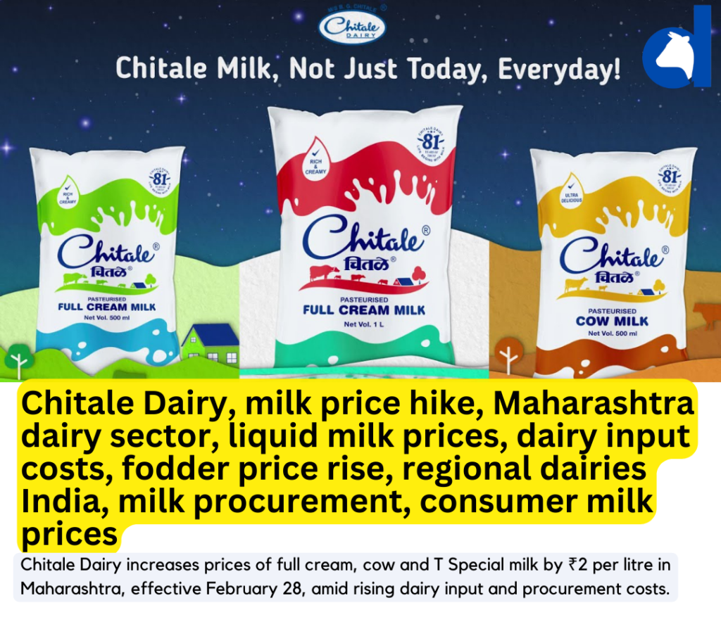 Chitale Dairy has announced a ₹2 per litre increase in the retail prices of select milk variants, effective February 28, 2026, citing rising operational and procurement costs. In an official communication issued by M/s B. G. Chitale, the company informed its milk distributors in Pune and surrounding areas that the revised prices apply to pasteurised […]