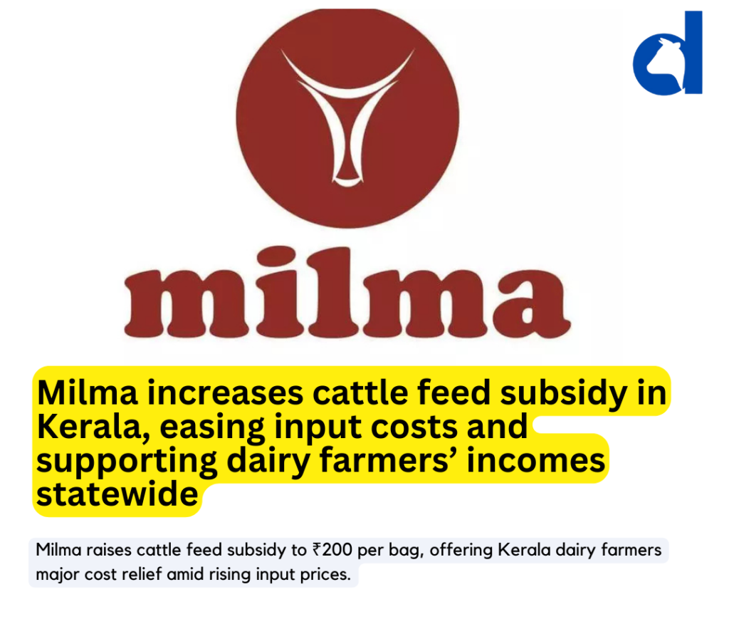 The Kerala Co-operative Milk Marketing Federation (KCMMF), operating under the Milma brand, has raised its cattle feed subsidy in a targeted move to ease mounting cost pressures on dairy farmers. Effective from 1 February to 31 March, the federation will provide a ₹200 per bag subsidy on Milma Gomathi Gold cattle feed, doubling the earlier […]