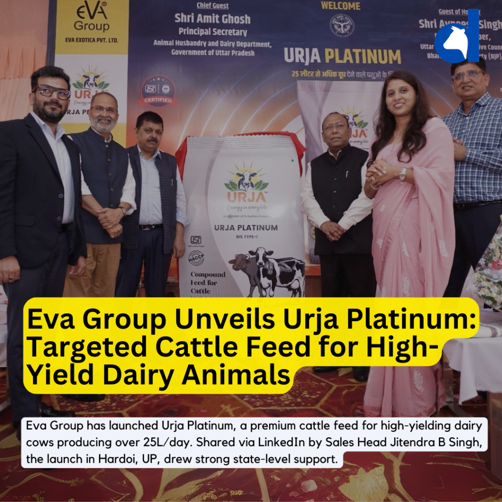 Hardoi, Uttar Pradesh | August 2025 — In a focused move to support high-performance dairy farming, Eva Group has launched Urja Platinum, a premium cattle feed formulated for dairy animals producing over 25 litres of milk per day. The product was introduced during an official launch in Sandila, Hardoi, attended by senior government officials and […]