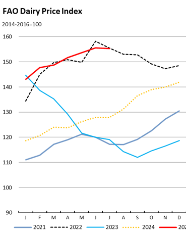 FAO July 2025: Dairy Prices Ease Slightly, But Butter Remains Near Record Highs