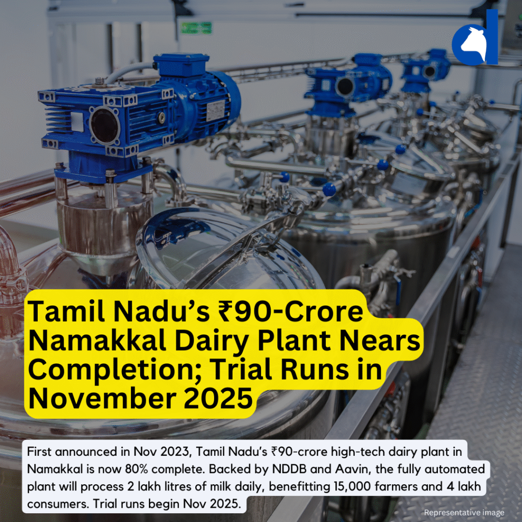 ₹90-Crore High-Tech Dairy Plant in Tamil Nadu’s Namakkal Nears Completion; Trial Runs in November 2025