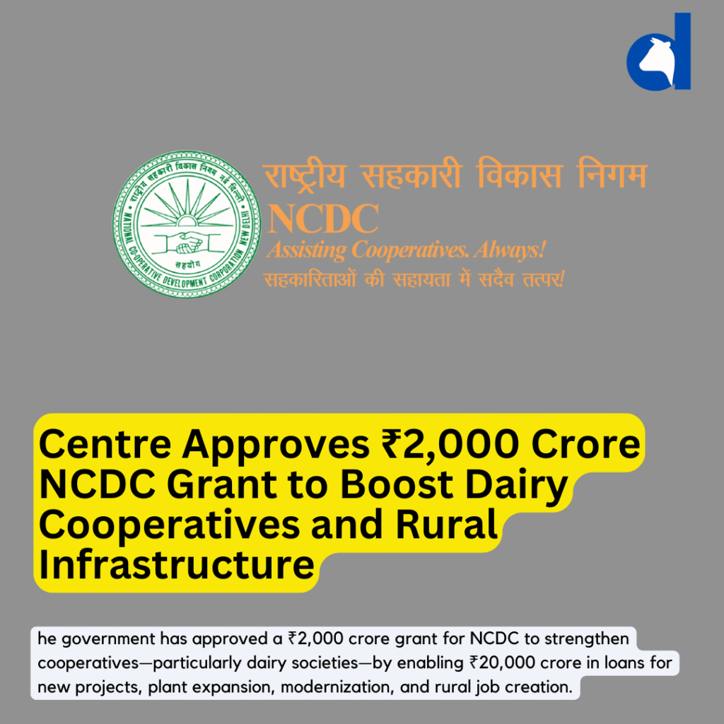 Government Approves ₹2,000 Crore Grant to NCDC to Boost Dairy and Cooperative Sectors