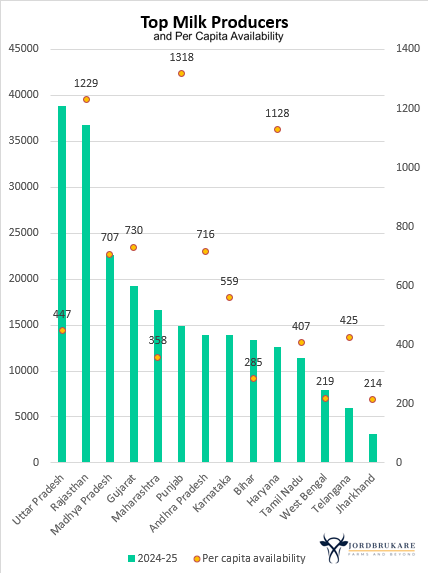 India produced around 248 million tonnes of milk in 2024–25, up from about 210 million tonnes in 2020–21. In just four years, national milk output has risen by roughly 18%, reinforcing India’s position as the world’s largest milk producer. Over the same period, per capita milk availability increased from 427 grams per person per day […]