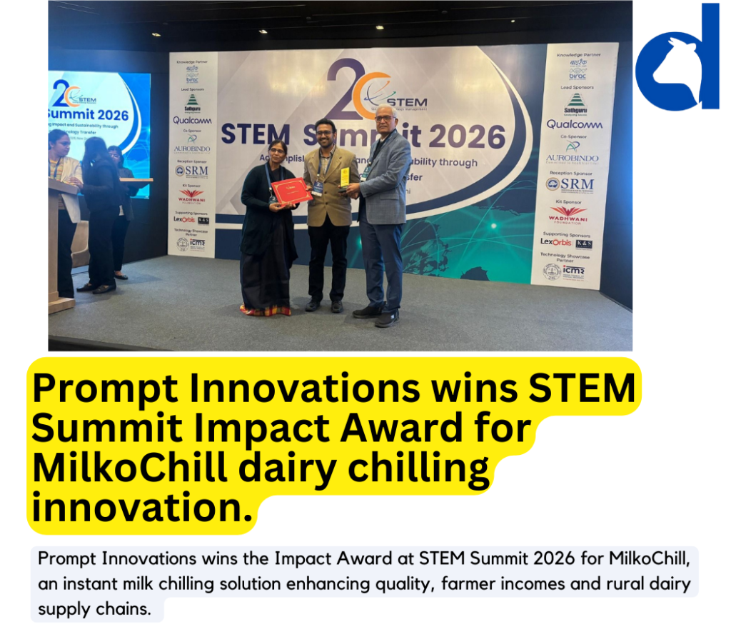 Technology-driven solutions for grassroots dairy challenges took centre stage at the STEM Summit 2026 in New Delhi, where Prompt Innovations Pvt. Ltd. received the Impact Award for its milk chilling technology, MilkoChill. The recognition from the Society for Technology Management highlights the growing importance of decentralised cold-chain innovations in strengthening India’s rural dairy economy. Addressing […]