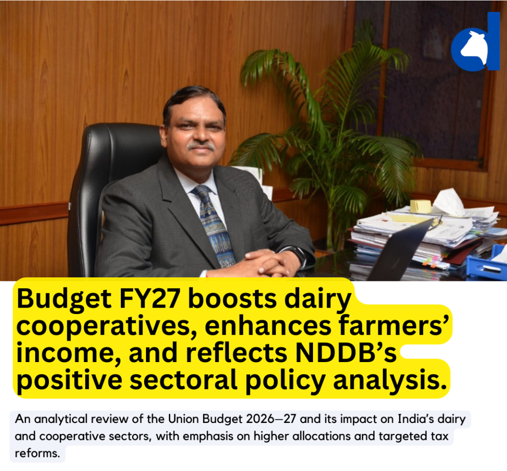 The Union Budget 2026-27 has been characterised by the National Dairy Development Board (NDDB) as a transformative fiscal blueprint for agriculture and allied sectors, particularly for dairy, livestock and cooperative movements. Dr Meenesh Shah, Chairman of the NDDB, emphasised that the Budget’s policy architecture is designed not merely to adjust allocations but to fundamentally strengthen […]