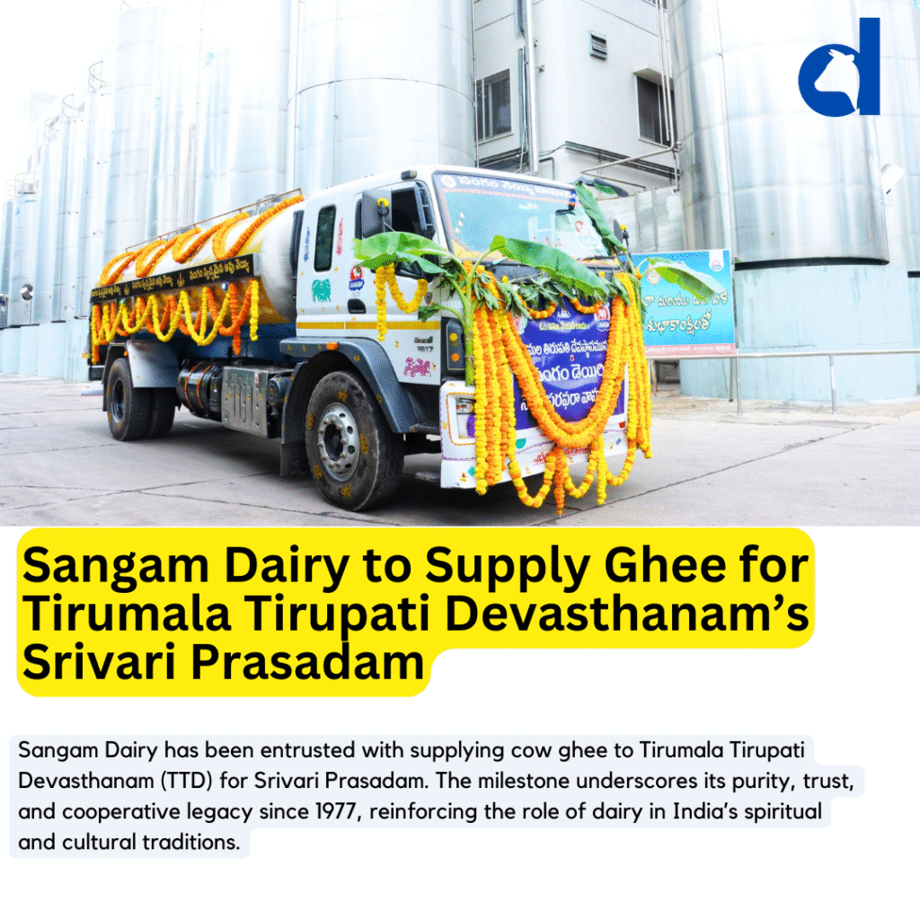Sangam Dairy Wins Prestigious Mandate to Supply Ghee for Tirumala Tirupati Devasthanam