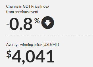 GDT Index Falls 0.8%: Cheddar Up, Mozzarella and SMP Down in Latest Auction